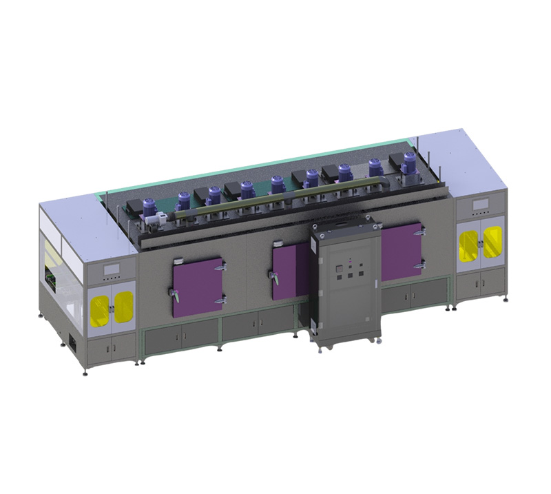 本设备用于金属化薄膜电容器芯子赋能选别,通过芯子上料机构将芯子供给到主机的测试夹具,夹好在夹具上的芯子逐格移动与各测试部配置的电气连接完成各检查项目。通过检查判定芯子良否品,不良品分类排出,良品由移载机构整理到芯子下料皮带。设备需要人工排盘到专用的胶框进行上下料,也可根据客户需求定制上下料方式。